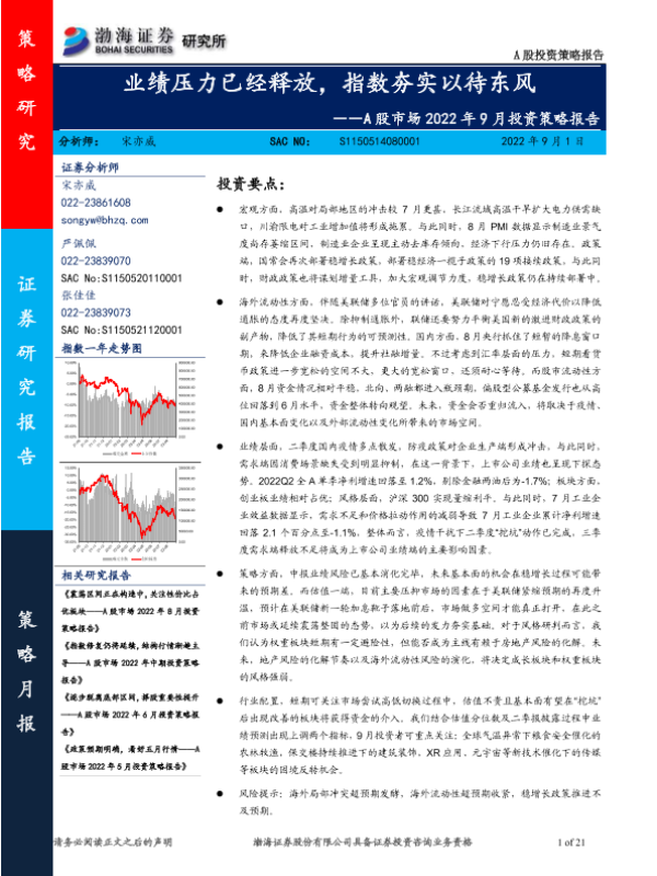【渤海证券】【20220901】A股市场2022年9月投资策略报告:业绩压力已经释放,指数夯实以待东风-21页