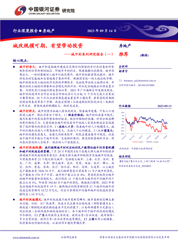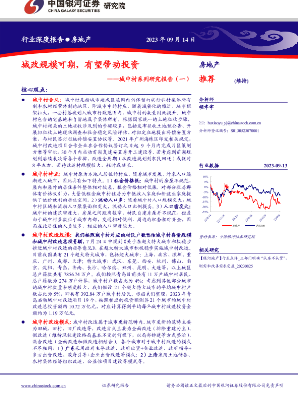 【银河证券】【20230914】房地产行业城中村系列研究报告(一):城改规模可期,有望带动投资-22页