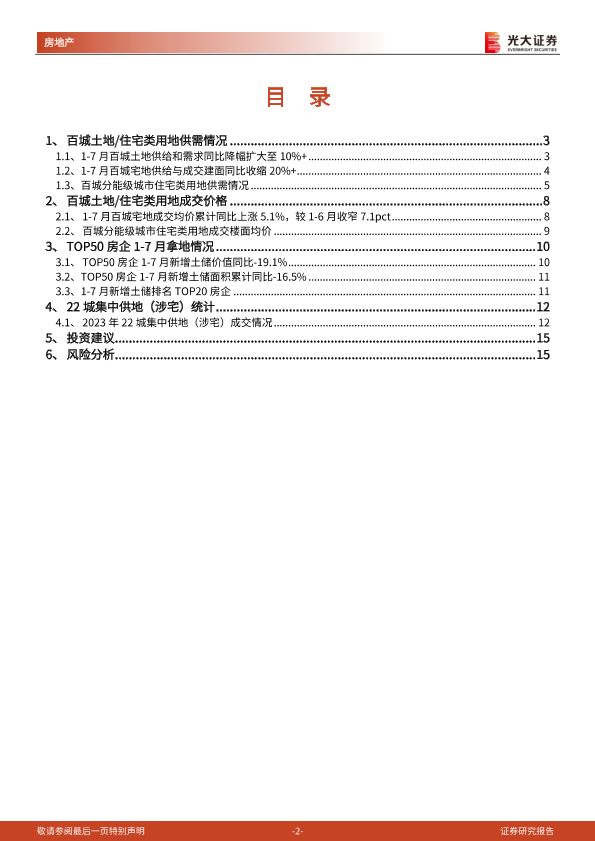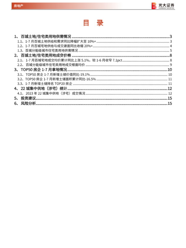 【光大证券】【20230824】房地产行业土地市场月度跟踪报告(2023年7月):1_7月百城宅地成交建面同比减少29%,成交楼面均价同比+5%-12页