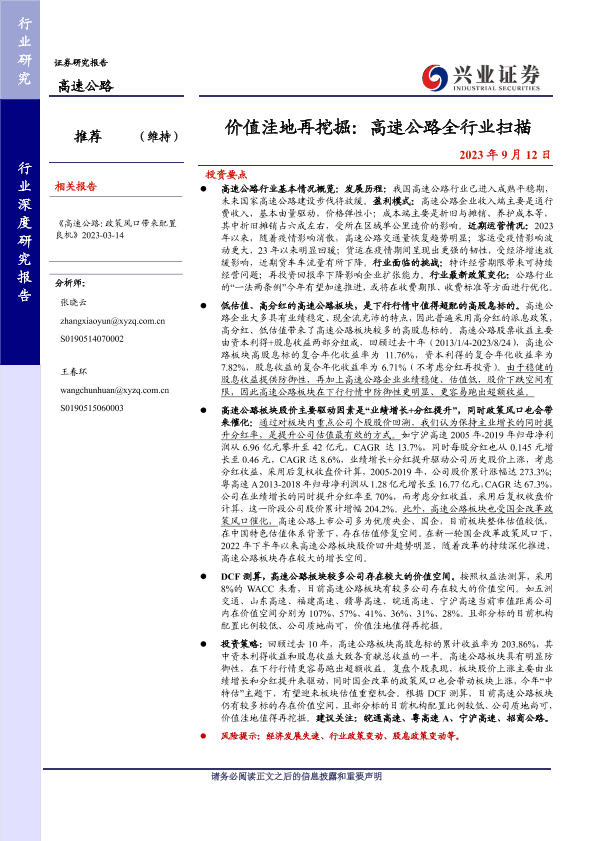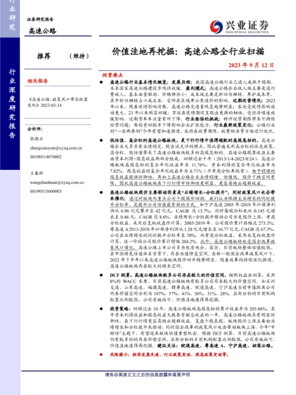 【兴业证券】【20230912】价值洼地再挖掘:高速公路全行业扫描-77页