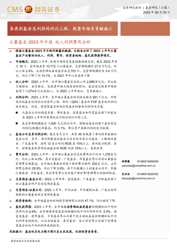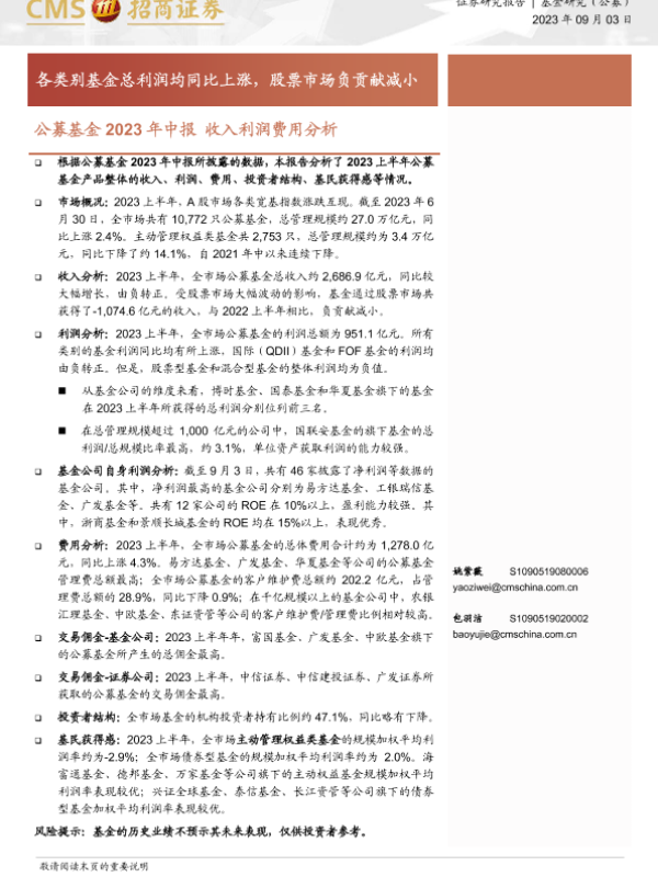 【海通证券】【20230903】公募基金2023年中报收入利润费用分析:各类别基金总利润均同比上涨,股票市场负贡献减小-19页