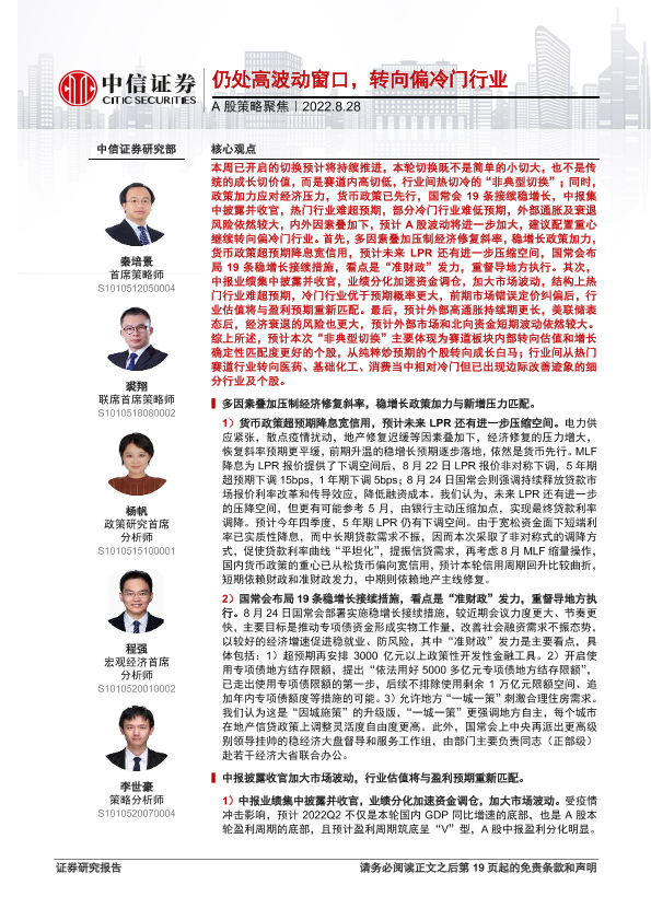 【中信证券】【20220828】A股策略聚焦:仍处高波动窗口,转向偏冷门行业-20页