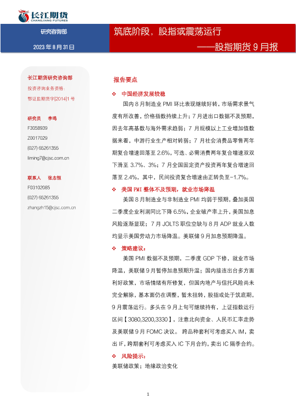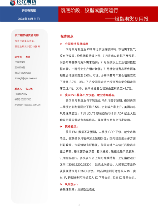 【长江期货】【20230831】股指期货9月报:筑底阶段,股指或震荡运行-16页