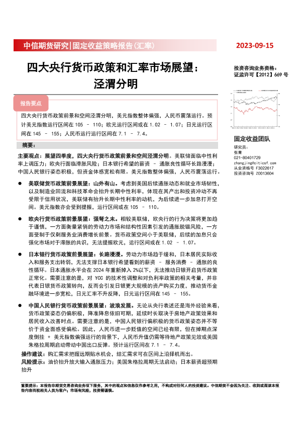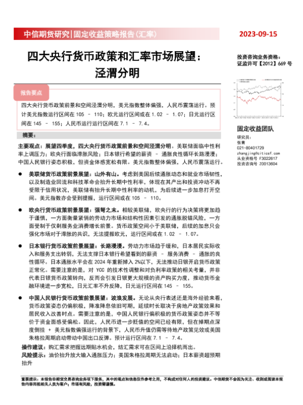 【中信期货】【20230915】固定收益策略报告(汇率):四大央行货币政策和汇率市场展望,泾渭分明-49页