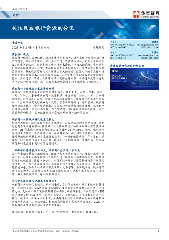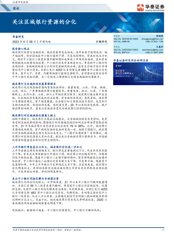 【华泰证券】【20230908】固收专题研究:关注区域银行资源的分化-21页