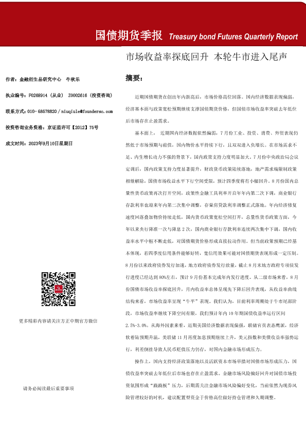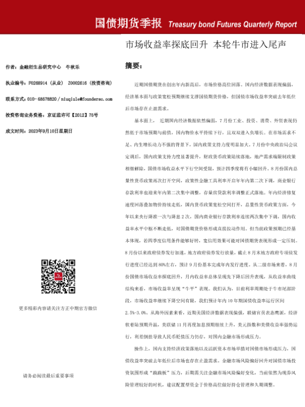 【方正中期期货】【20230910】国债期货季报-30页