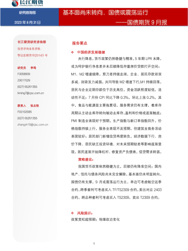 【长江期货】【20230831】国债期货9月报:基本面尚未转向,国债或震荡运行-18页