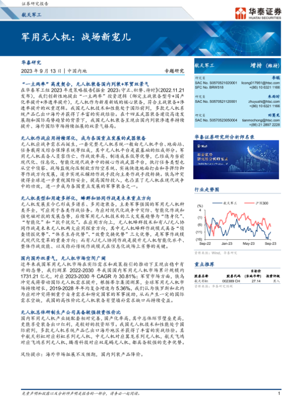 【华泰证券】【20230913】航天军工行业:军用无人机,战场新宠儿-41页