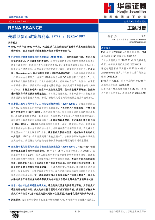 【华金证券】【20230901】宏观宇宙系列·贰:RENAISSANCE,美联储货币政策与利率(中),1985-1997-23页