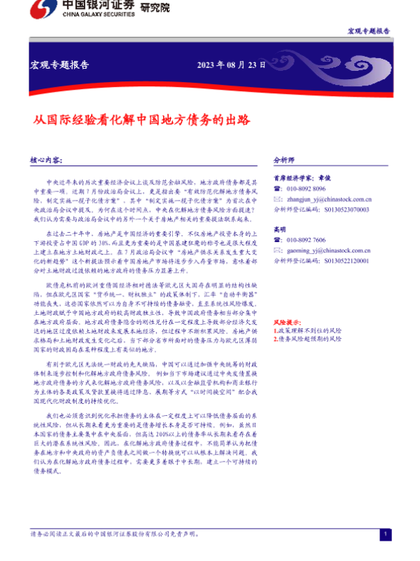【银河证券】【20230823】宏观专题报告:从国际经验看化解中国地方债务的出路-14页