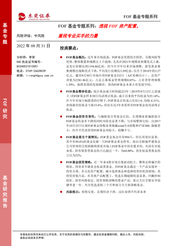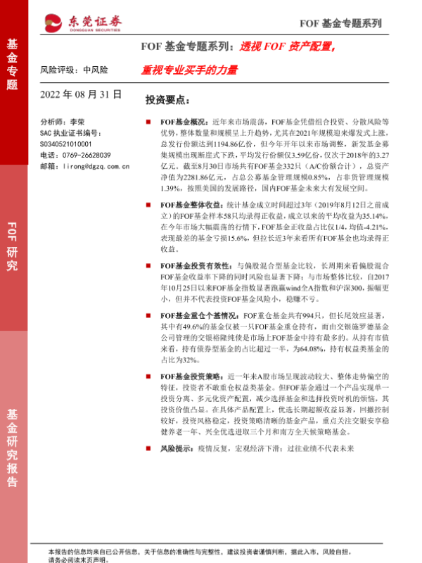 【东莞证券】【20220831】FOF基金专题系列:透视FOF资产配置,重视专业买手的力量-19页