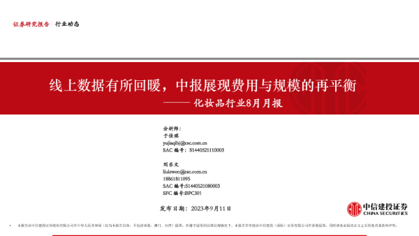 【中信建投证券】【20230911】化妆品行业8月月报:线上数据有所回暖,中报展现费用与规模的再平衡-25页