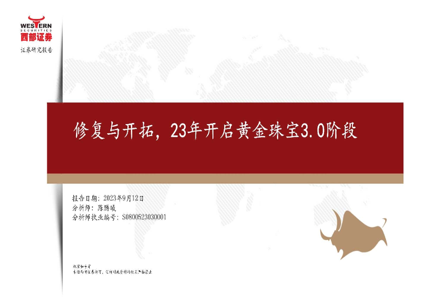 【西部证券】【20230912】黄金珠宝行业:修复与开拓,23年开启黄金珠宝3.0阶段-21页