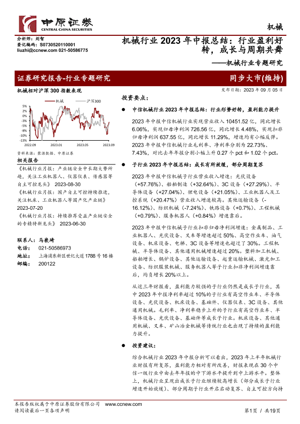 【中原证券】【20230905】机械行业2023年中报总结:行业盈利好转,成长与周期共舞-19页