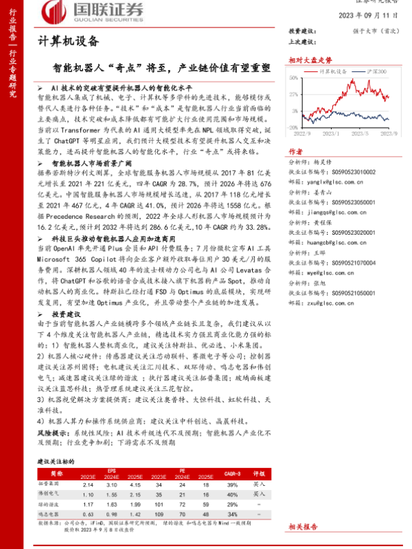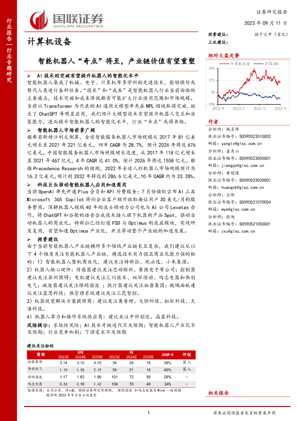 【国联证券】【20230911】计算机设备行业:智能机器人“奇点”将至,产业链价值有望重塑-36页