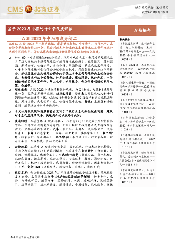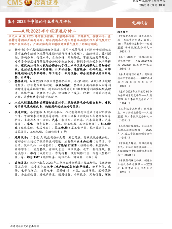 【海通证券】【20230910】A股2023年中报深度分析二:基于2023年中报的行业景气度评估-22页
