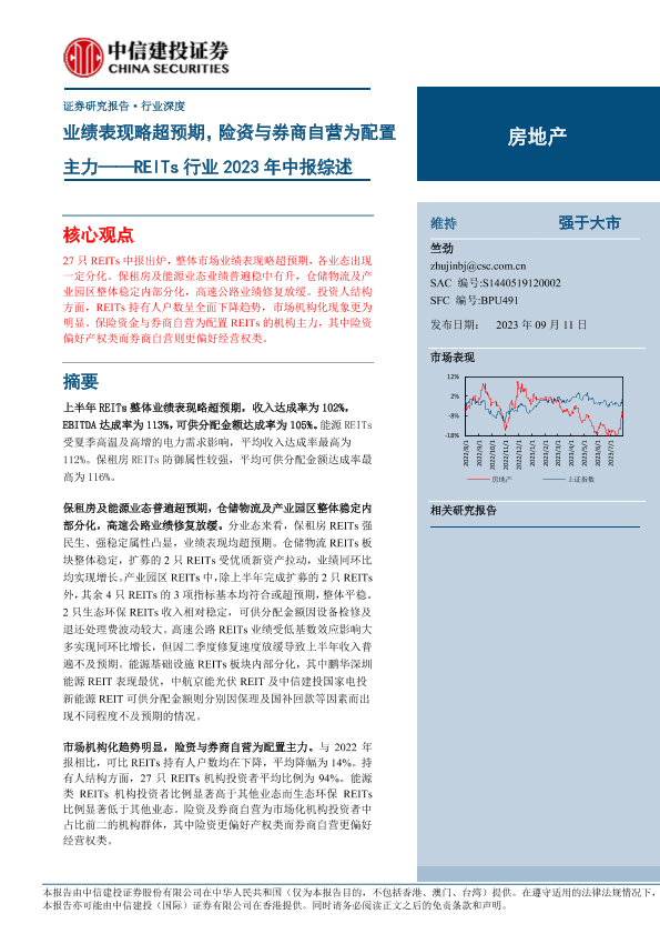 【中信建投证券】【20230911】REITs行业2023年中报综述:业绩表现略超预期,险资与券商自营为配置主力-20页