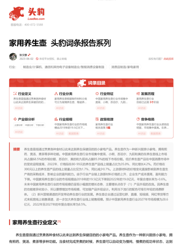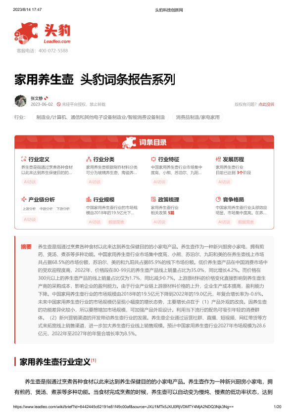 【头豹研究院】【20230602】家用养生壶 头豹词条报告系列-18页