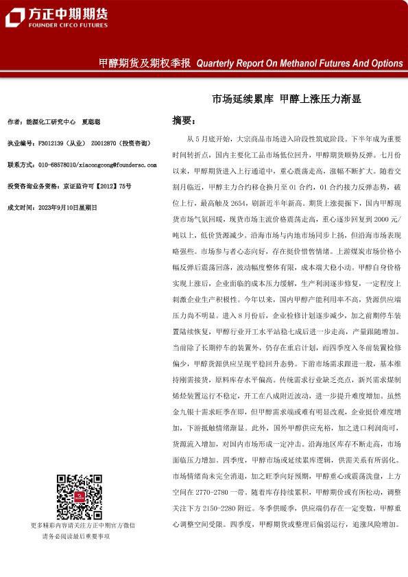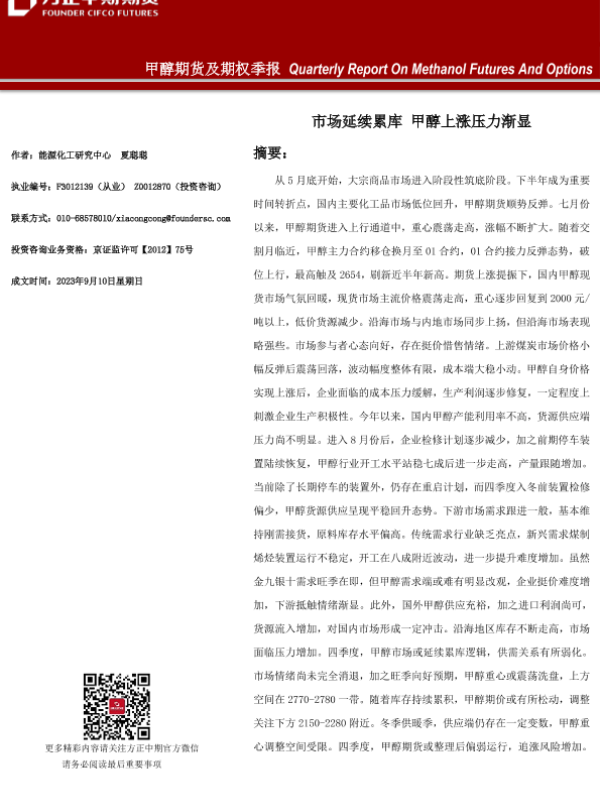 【方正中期期货】【20230910】甲醇期货及期权季报-26页