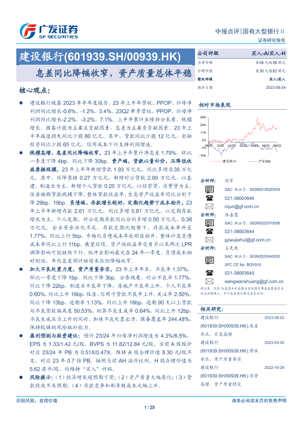 【广发证券】【20230824】建设银行(601939.SH/00939.HK)息差同比降幅收窄,资产质量总体平稳-20页