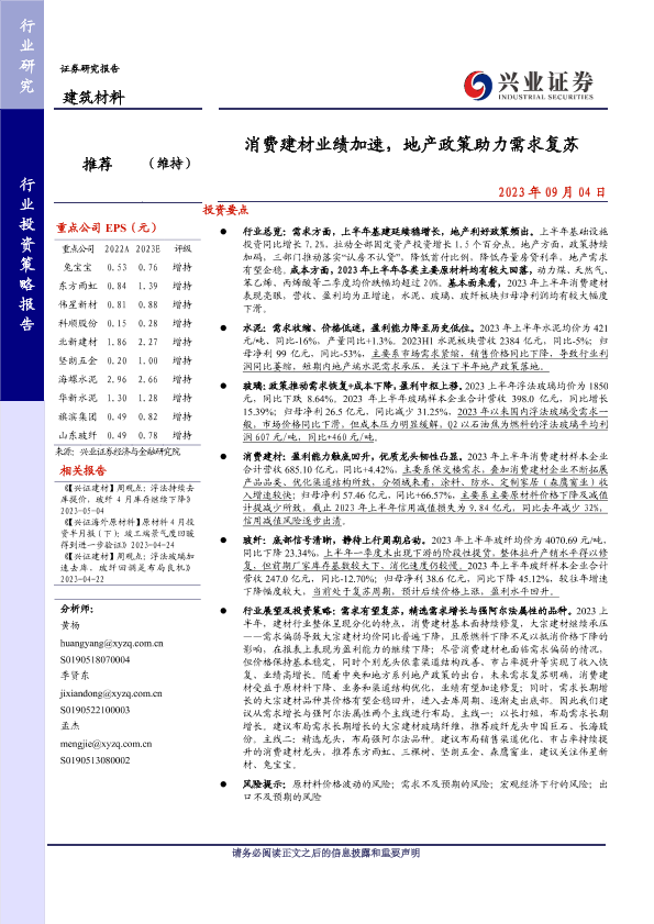 【兴业证券】【20230904】消费建材业绩加速,地产政策助力需求复苏-31页