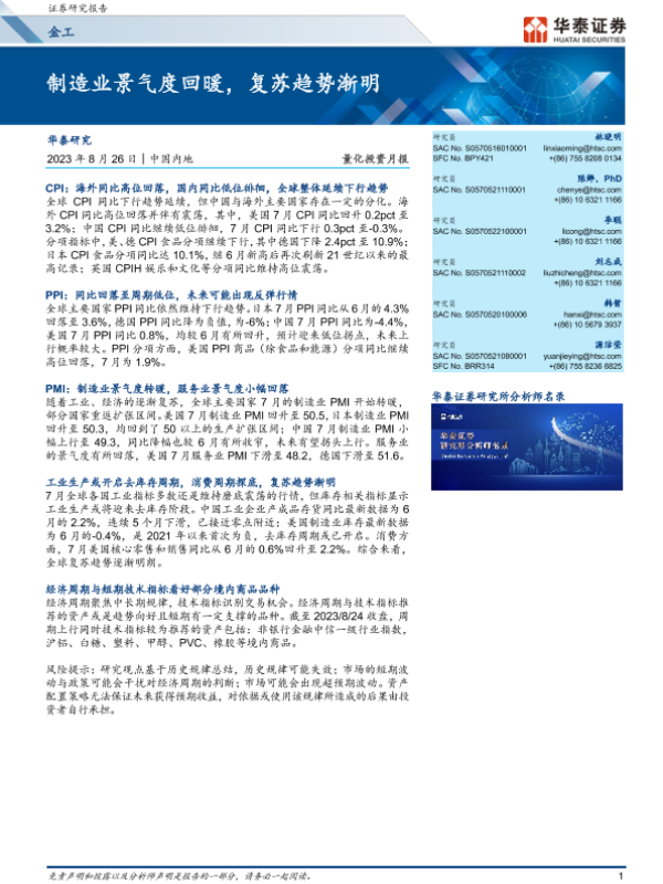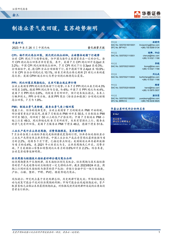 【华泰证券】【20230826】金工量化投资月报:制造业景气度回暖,复苏趋势渐明-14页