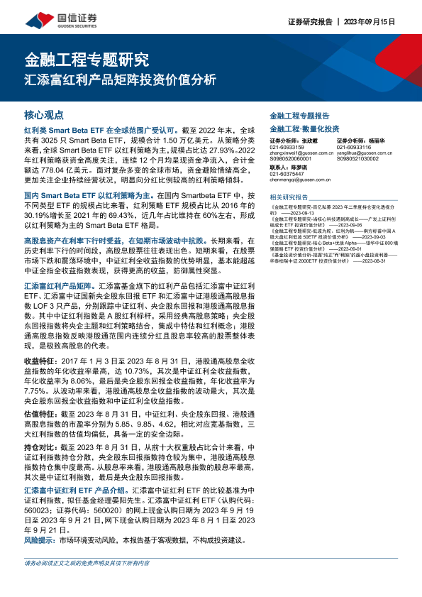【国信证券】【20230915】金融工程专题研究:汇添富红利产品矩阵投资价值分析-24页