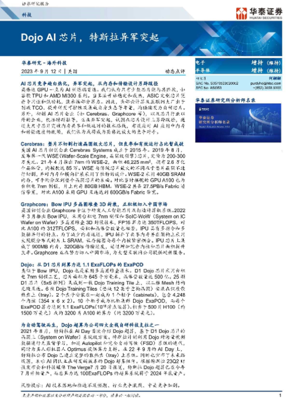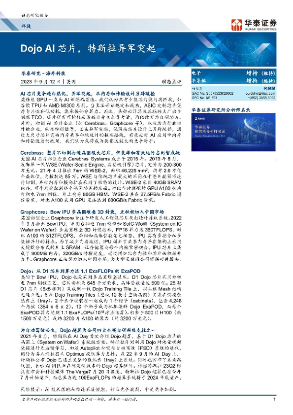 【华泰证券】【20230912】科技行业动态点评:Dojo AI芯片,特斯拉异军突起-20页