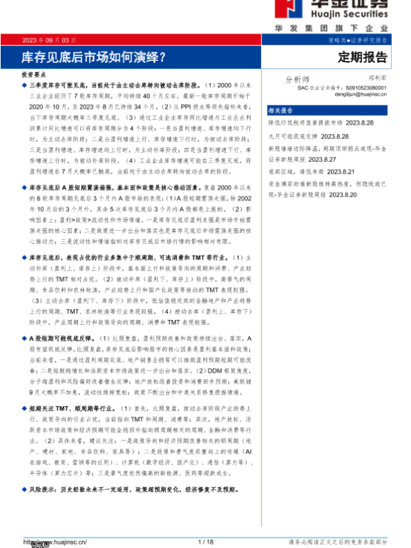 【华金证券】【20230903】库存见底后市场如何演绎?-18页