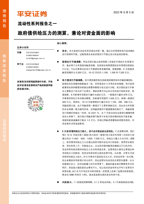 【平安证券】【20230905】流动性系列报告之一:政府债供给压力的测算,兼论对资金面的影响-16页