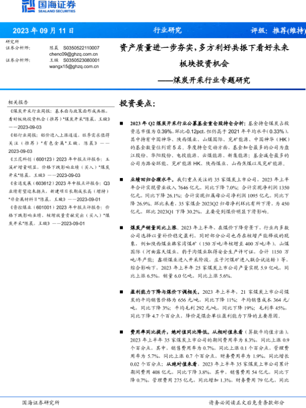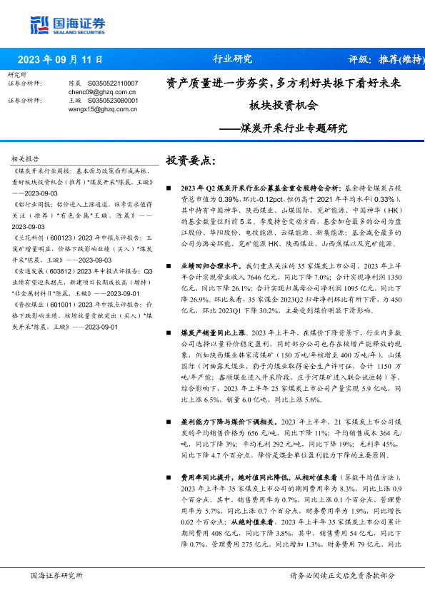 【国海证券】【20230911】煤炭开采行业专题研究:资产质量进一步夯实,多方利好共振下看好未来板块投资机会-24页