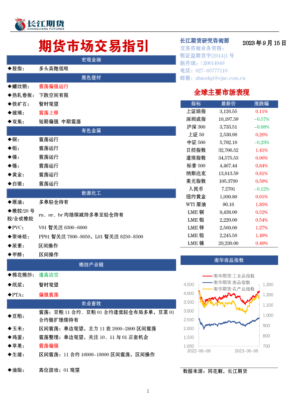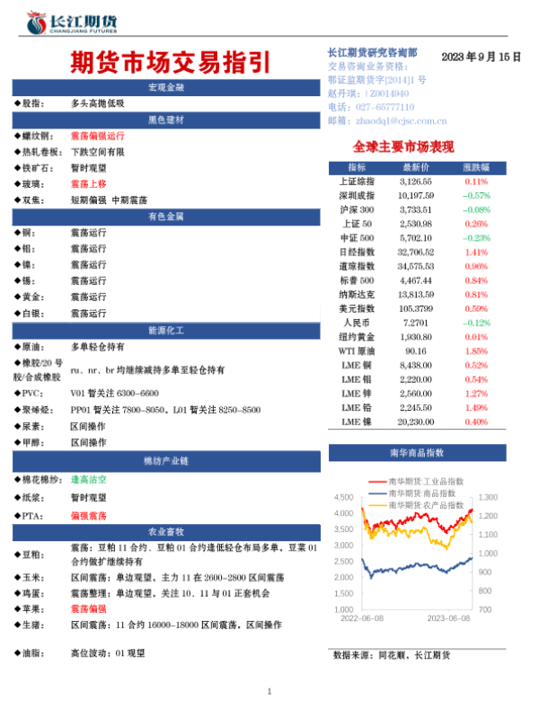 交易指引 商品指数 期货市场 金融市场 长江期货