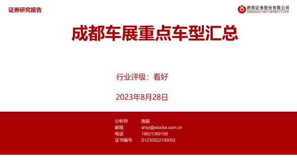 【浙商证券】【20230828】汽车行业:成都车展重点车型汇总-27页