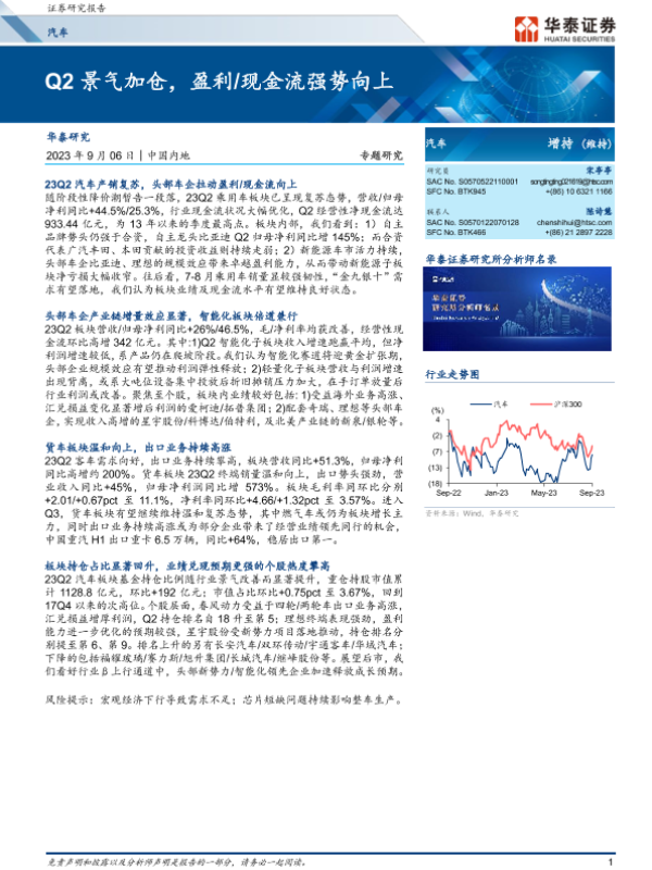 【华泰证券】【20230906】汽车行业专题研究:Q2景气加仓,盈利现金流强势向上-17页