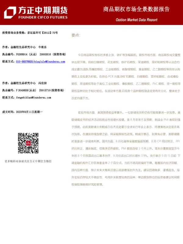 【方正中期期货】【20230911】商品期权市场全景数据报告-101页