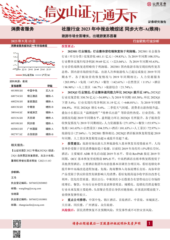 【山西证券】【20230913】社服行业2023年中报业绩综述:旅游市场全面增长,出境游复苏显著-30页
