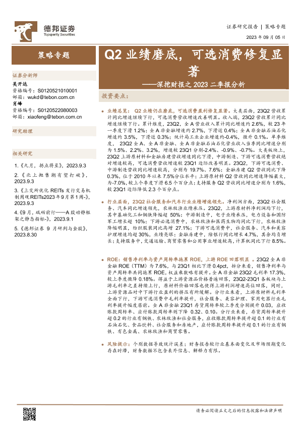 【德邦证券】【20230905】深挖财报之2023二季报分析:Q2业绩磨底,可选消费修复显著-18页