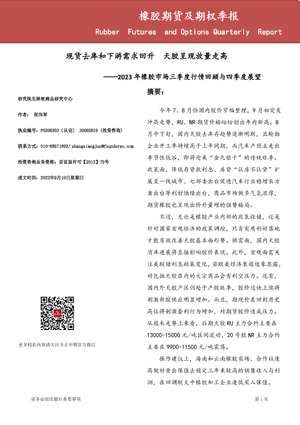 【方正中期期货】【20230910】橡胶期货及期权季报-23页