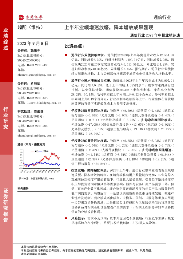 【东莞证券】【20230908】通信行业2023年中报业绩综述:上半年业绩增速放缓,降本增效成果显现-35页