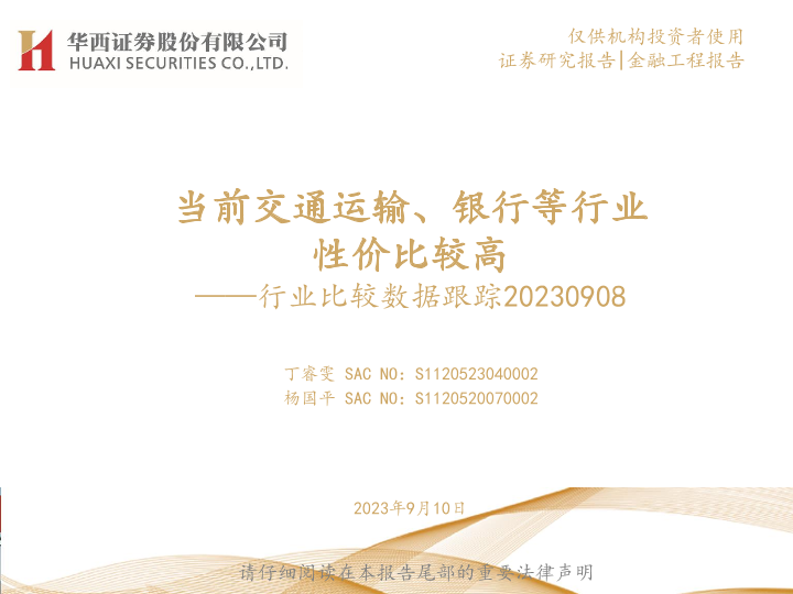 【华西证券】【20230908】行业比较数据跟踪:当前交通运输、银行等行业性价比较高-22页