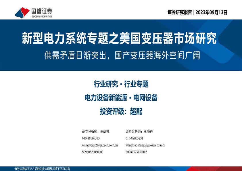 【国信证券】【20230913】新型电力行业系统专题之美国变压器市场研究:供需矛盾日渐突出,国产变压器海外空间广阔-30页
