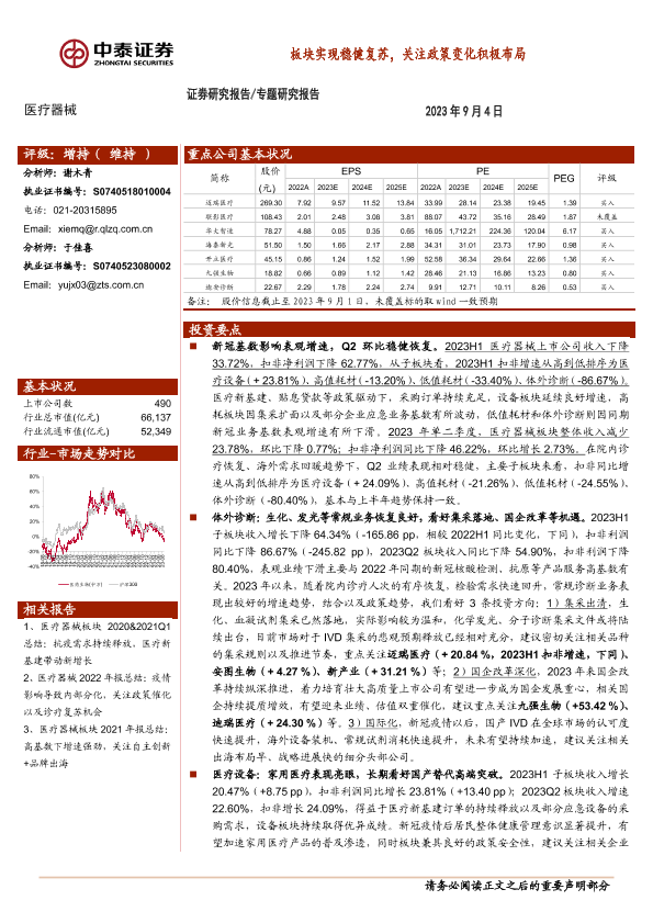 【中泰证券】【20230904】医疗器械行业专题研究报告:板块实现稳健复苏,关注政策变化积极布局-15页