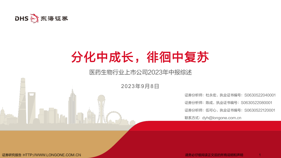 【东海证券】【20230908】医药生物行业上市公司2023年中报综述:分化中成长,徘徊中复苏-55页