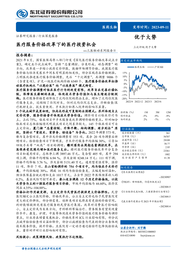 【东北证券】【20230911】医药生物行业三医联动系列报告Ⅱ:医疗服务价格改革下的医疗投资机会-64页