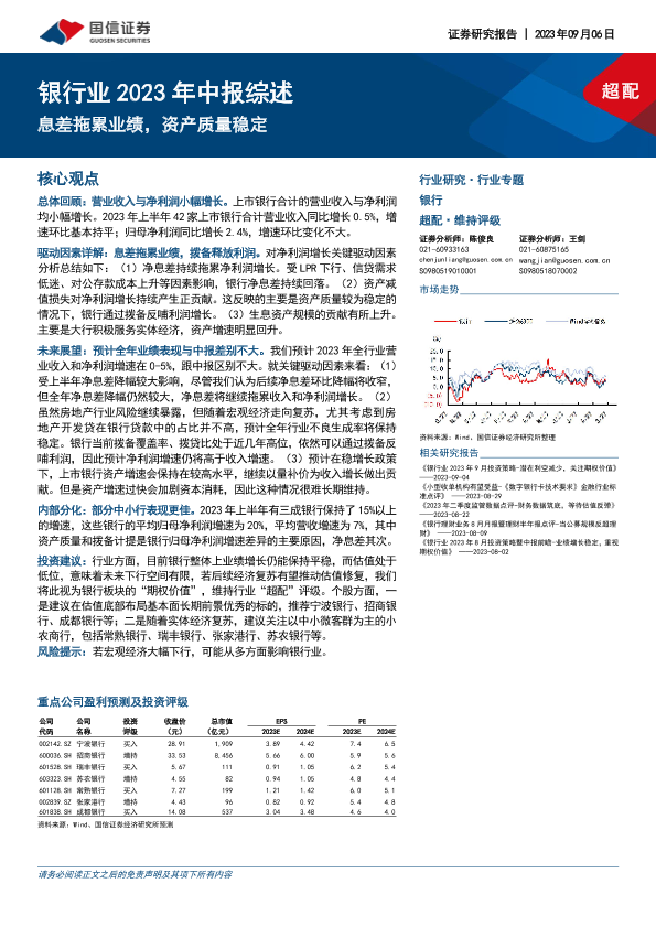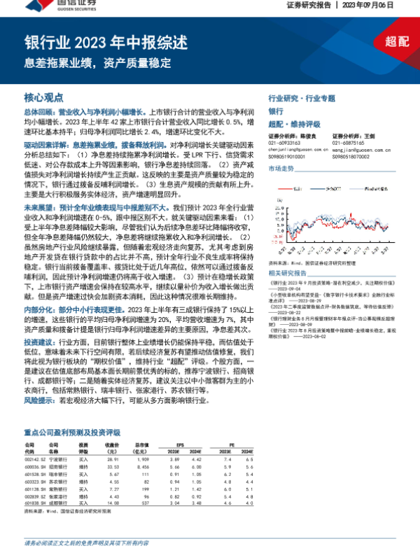 【国信证券】【20230906】银行业2023年中报综述:息差拖累业绩,资产质量稳定-19页