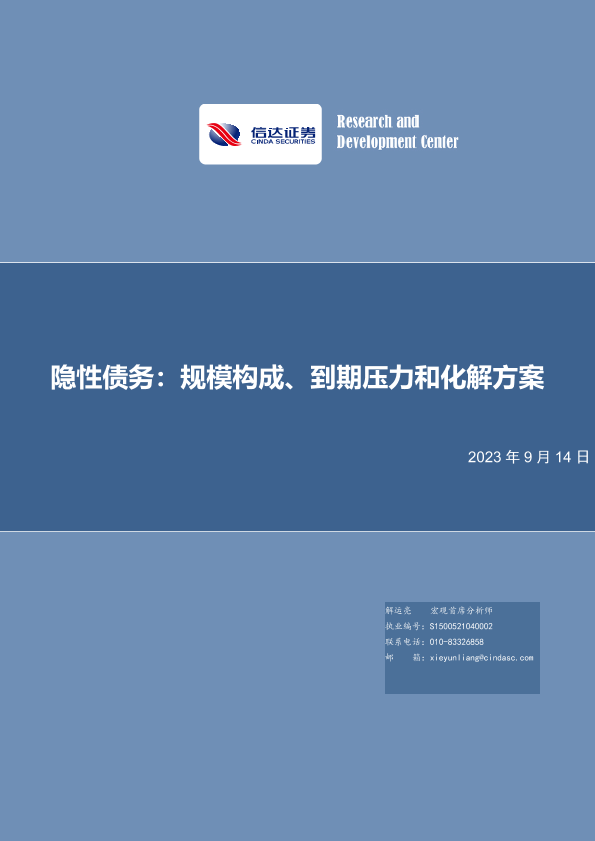 【信达证券】【20230914】隐性债务:规模构成、到期压力和化解方案-26页