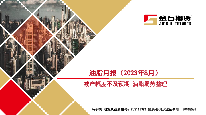 【金石期货】【20230914】油脂月报(2023年8月):减产幅度不及预期,油脂弱势整理-33页