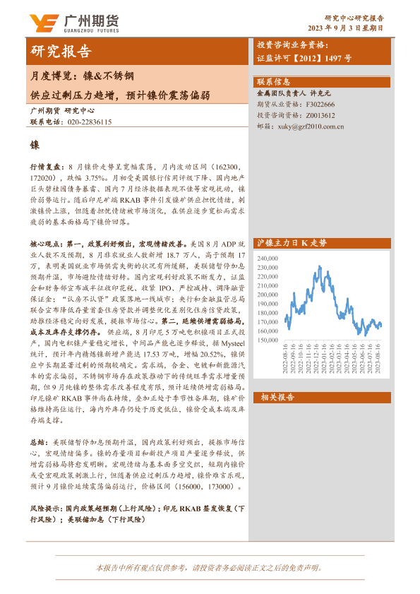 【广州期货】【20230903】月度博览:镍&不锈钢,供应过剩压力趋增,预计镍价震荡偏弱-18页