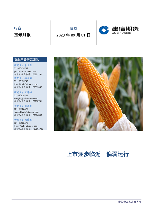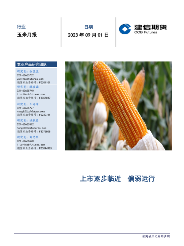 【建信期货】【20230901】玉米月报:上市逐步临近,偏弱运行-18页