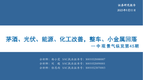 【华安证券】【20230911】中观景气纵览第45期:茅酒、光伏、能源、化工改善,整车、小金属回落-35页